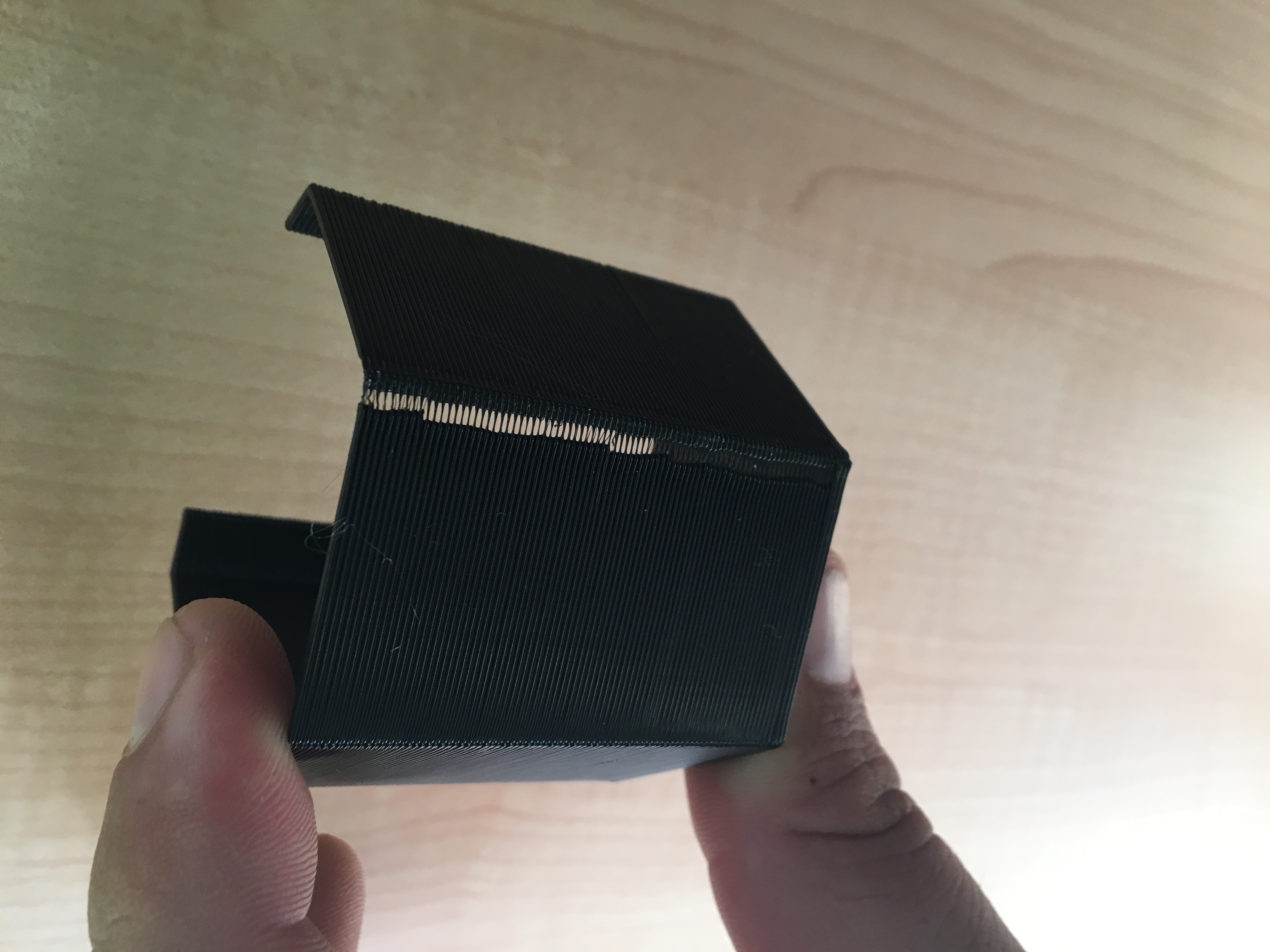 No da tirones ni se traba (mando una foto). Es como si le faltara material cuando inicia la capa pero no entiendo porque lo hace a mitad de impresión (al menos en la fotografía de la caja roja), voy a probar haciendo el stl com simplify3d y ver que pasa, ya comento resultados.