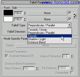 - seleccionamos como tipo de fallof el fresnel.