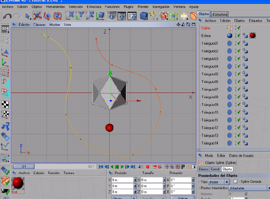 Comprobemos con reproducir (play) como la esfera se mueve siguiendo la Spline.