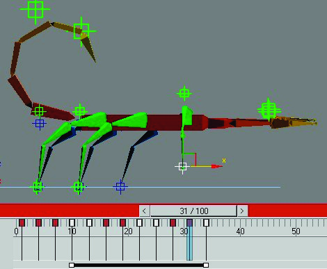 A medida que vamos vinculando los Solver a los ayudantes, podemos ir ocultando los primeros para no seleccionarlos por error. animación del escorpión