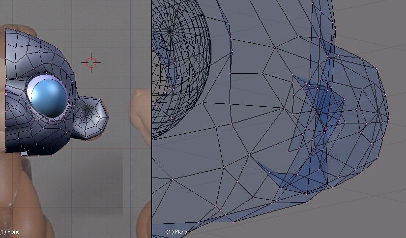 Now turn your mirror modifier bak on, his Edges should line up nicer now. You might ned todo move the object center of rupert a Little closer todo his inside edge. (to move an object center, select a vértice on the inside Edge of rupert, press [shift + s]. Select cursor todo selection on the popup menú. Next, go todo the edit buttons window and choose, center todo cursor in the Mesh panel).