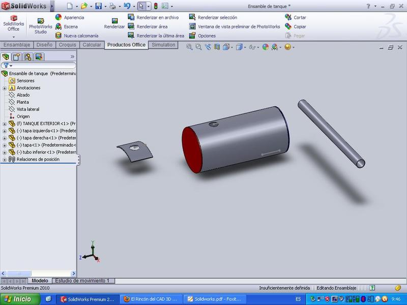 Hola tengo un problema con un ensamble y las relaciones de posición, tengo que hacer un tanque exterior con un tanque interior más pequeño y que van unidos con dos tubos y un sujetador y con dos resistencias inferiores dentro del tanque exterior para calentar el agua, agrego una imagen para que se entienda mejor.
