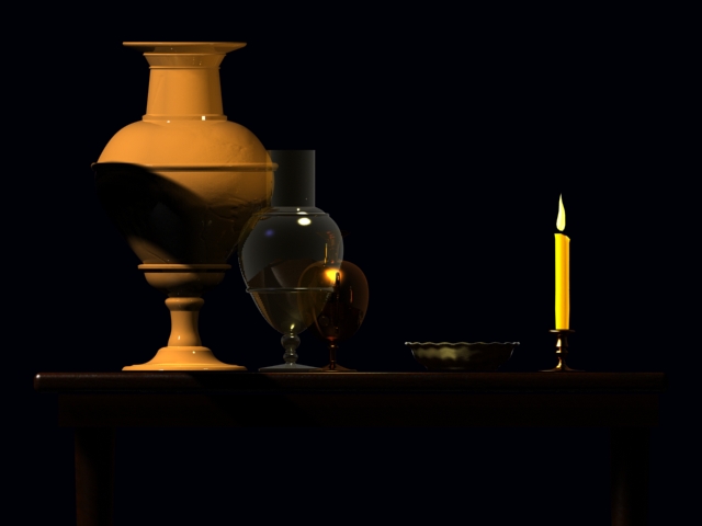 Hola, estoy estudiando materiales y luces en un bodegón construido con 3ds Max, he incorporado una vela y no me convence el resultado ¿alguien podría ayudarme a realizar una llama creíble y animable?