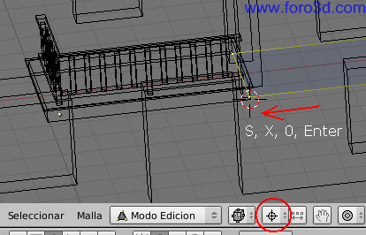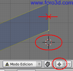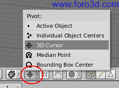 Nos aseguramos que el pivot 3d es relativo al cursor 3d pulsando la tecla punto en el teclado alfanumérico o el botón correspondiente como ya hicimos antes.