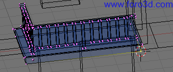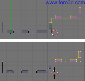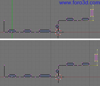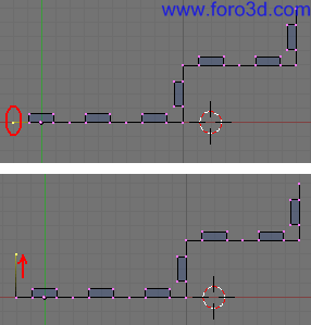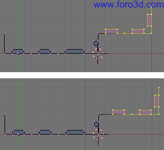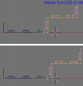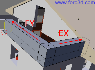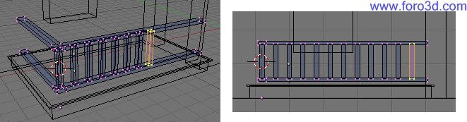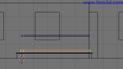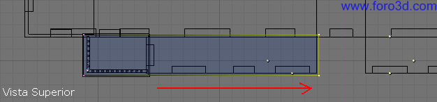En vista superior asegúrate de que este nuevo objeto encaja correctamente con la estructura que ya tenemos hecha, que no está ni más atrás ni más adelante. Para moverlo selecciona todos sus vértices y pulsa g y, y lo arrastras dejando pulsado control.