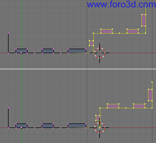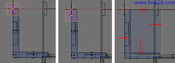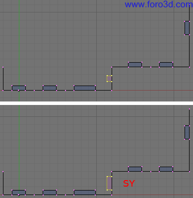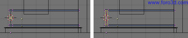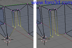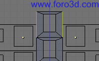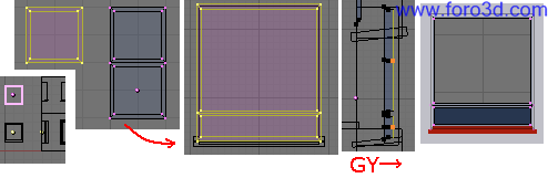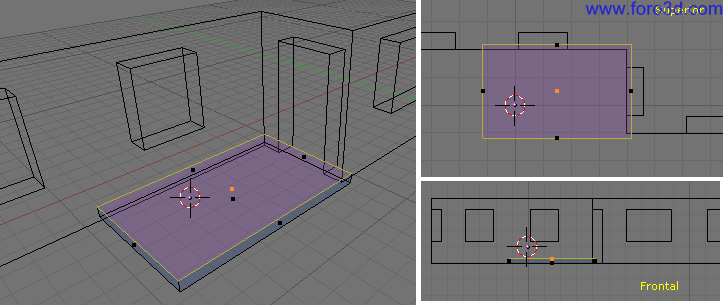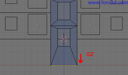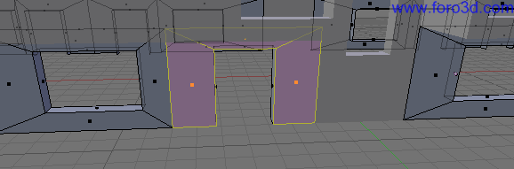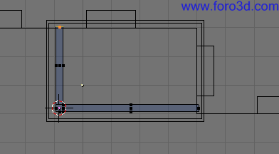 También podemos seleccionar con b y recuadro los vértices de la parte de abajo del hueco y arrastrarlo un poco hacia abajo pulsando g para que queden más cerca del suelo. Deja más trozo de pared que en la parte superior.