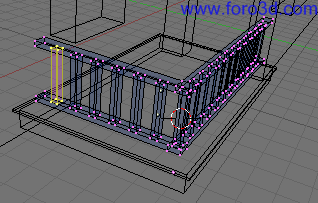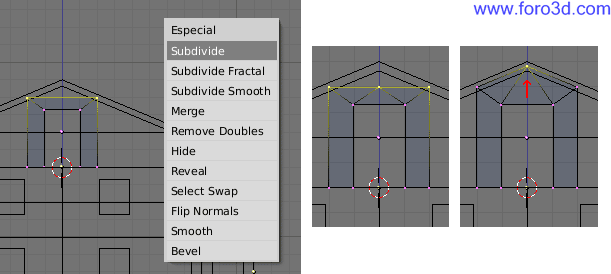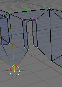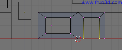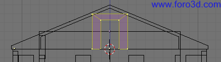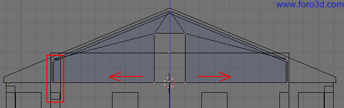 Vamos a hacer que la tercera ventana empezando por la izquierda sea una unidad más ancha. Pulsando b selecciona todos los vértices que hay a la derecha del centro de esta ventana y muévelos una posición hacia la derecha. Habremos arrastrado parte de las paredes hacia la derecha con lo que el piso en total será una unidad más ancho.