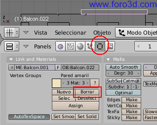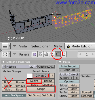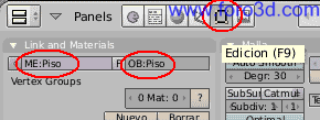 Puedes asignarle un nombre a esta malla y a este objeto. Pulsando el botón de edición en la barra de herramienta o la tecla f9 aparece la paleta de botones de enlaces and materiales. Allí escribe el nombre, piso, en el recuadro de nombre de malla (me y nombre del objeto (ob.