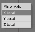 Ahora vamos a reflejar el nuevo objeto. Pulsa Control +m y en el menú que aparece se nos pregunta en que dirección vamos a hacer el reflejo. Para conseguir el efecto deseado tendrás que seleccionar la opción x local.