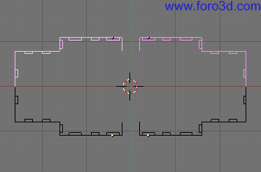 Una vez hecho esto ya tenemos la pared completa de nuestro piso. Muy importante seleccionar todos los vértices (tecla a una o dos veces) y eliminar los vértices duplicados pulsando w y seleccionando remove doubles en el menú que aparece.