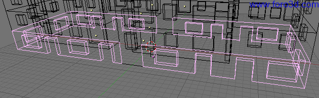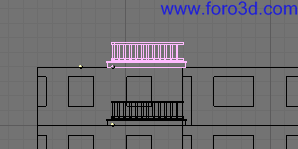 Una vez hecho esto, ya tenemos un trozo de pared con una ventana. Nos falta irlo duplicando (mayúsculas+d) para ir construyendo la fachada del piso. Todo este proceso lo seguimos haciendo en modo edición, viendo los vértices y con el puntero del ratón en forma de cruz.