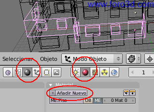 Vamos a establecer en primer lugar el material para las paredes de los pisos. Selecciona cualquiera de ellas y en la paleta de materiales pulsa el botón añadir nuevo.