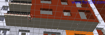 Usando estos dos elementos, terminamos de modelar toda la planta comercial del bloque de pisos distribuyendo las puertas y los escaparates de la mejor manera posible. Tendremos que dejar sin nada las partes centrales de delante y detrás que ya están modeladas anteriormente. Esta operación la puedes hacer con más comodidad en vista superior.