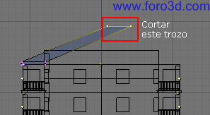 A continuación vamos a construir el hueco de la puerta del balcón, que todavía es una ventana. Este puede ser un procedimiento útil en Blender para modelar puertas a partir de las ventanas que hemos hecho anteriormente.