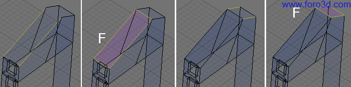 Para construir la pared del fondo, selecciona las dos líneas verticales del fondo y pulsa f. Se creara una nueva cara.
