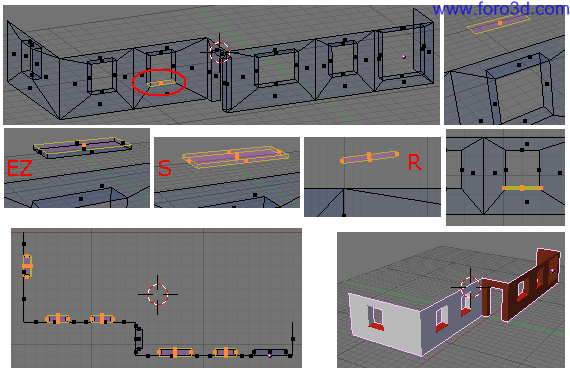 Ahora nos faltan otras dos ventanas más hacia la derecha y finalmente otra girada. Esto ya lo tenemos hecho aquí. Solamente con duplicar y mover ya sale.
