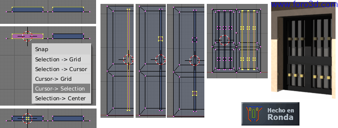 A continuación pulsamos, z, cero, enter para llevarlos hacia abajo exactamente hasta el suelo. Ya tenemos echa la puerta.