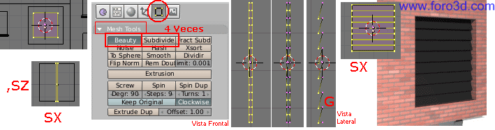 Vamos a modelar el primer hueco, en este caso se tratara del de la celosía. Le daremos unas dimensiones estándar y después lo duplicaremos para las demás y las modificaremos independientemente. Este proceso es útil para modelar cualquier pared con ventanas en Blender.