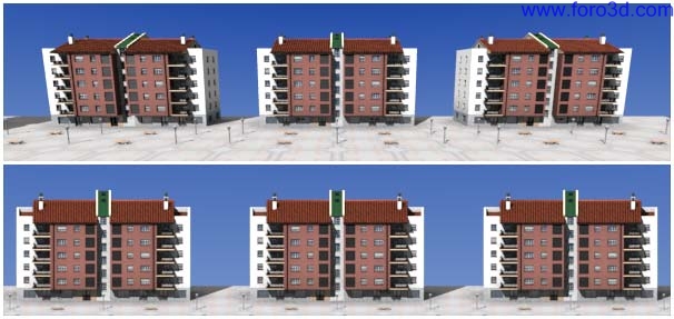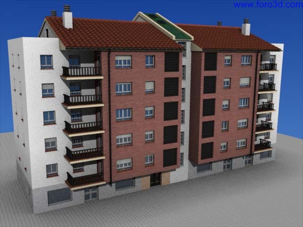 La escena final podría consistir en acoplar nuestro bloque de pisos en una fotografía real, en crear una escena usando además otros distintos edificios también modelados en 3d, en acoplar los bloques de pisos a un plano de una ciudad que existe realmente o que está en proyecto.