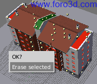 Otra cosa importante que se ve mal ahora son las persianas. Como todo es duplicado se ve que en todos los edificios están puestas de la misma forma. Por lo menos en los sitios donde más se ven habrá que hacer algunos cambios. Donde más se nota este fallo es que en el edificio del fondo están igual que en el primero de la izquierda. No podemos limitarnos a modificar unas persianas porque entonces los cambios afectarían a todos los edificios y seguiríamos en las mismas. Antes de editar el objeto hay que hacerlo independiente para que los cambios no afecten a los demás.