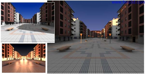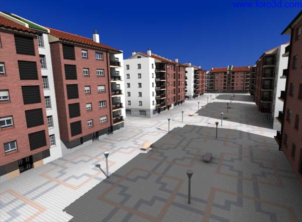 De la misma forma que hemos hecho esta escena podemos hacer todas las que queramos, ya sea a partir de esta cambiando la posición de la cámara o la iluminación, empezando desde cero insertando el bloque de pisos entero que deberá estar siempre a salvo en un archivo aparte. Los resultados pueden ser muy distintos.