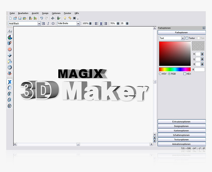 Magix 3d Maker es un programa con todo lo necesario para crear animaciones con texto y otros objetos en 3d para títulos de montajes fotográficos y películas.